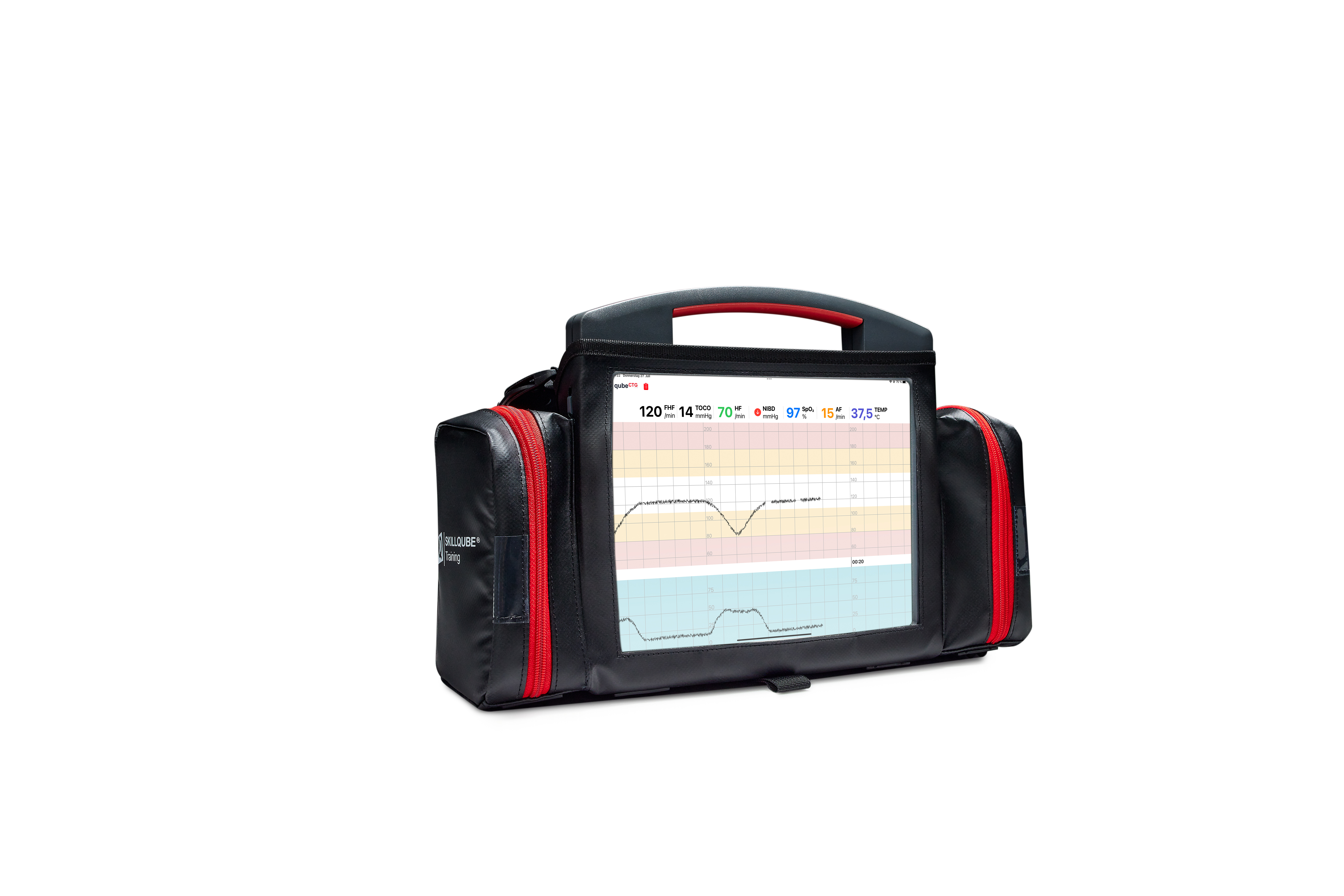 Le qubeCTG de SkillQube est un simulateur sur tablette monté sur un chariot roulant professionnel, mobile et flexible, idéal pour les simulations in situ. Il intègre une bibliothèque de scénarios préprogrammés permettant de progresser des situations de base jusqu’aux cas complexes.